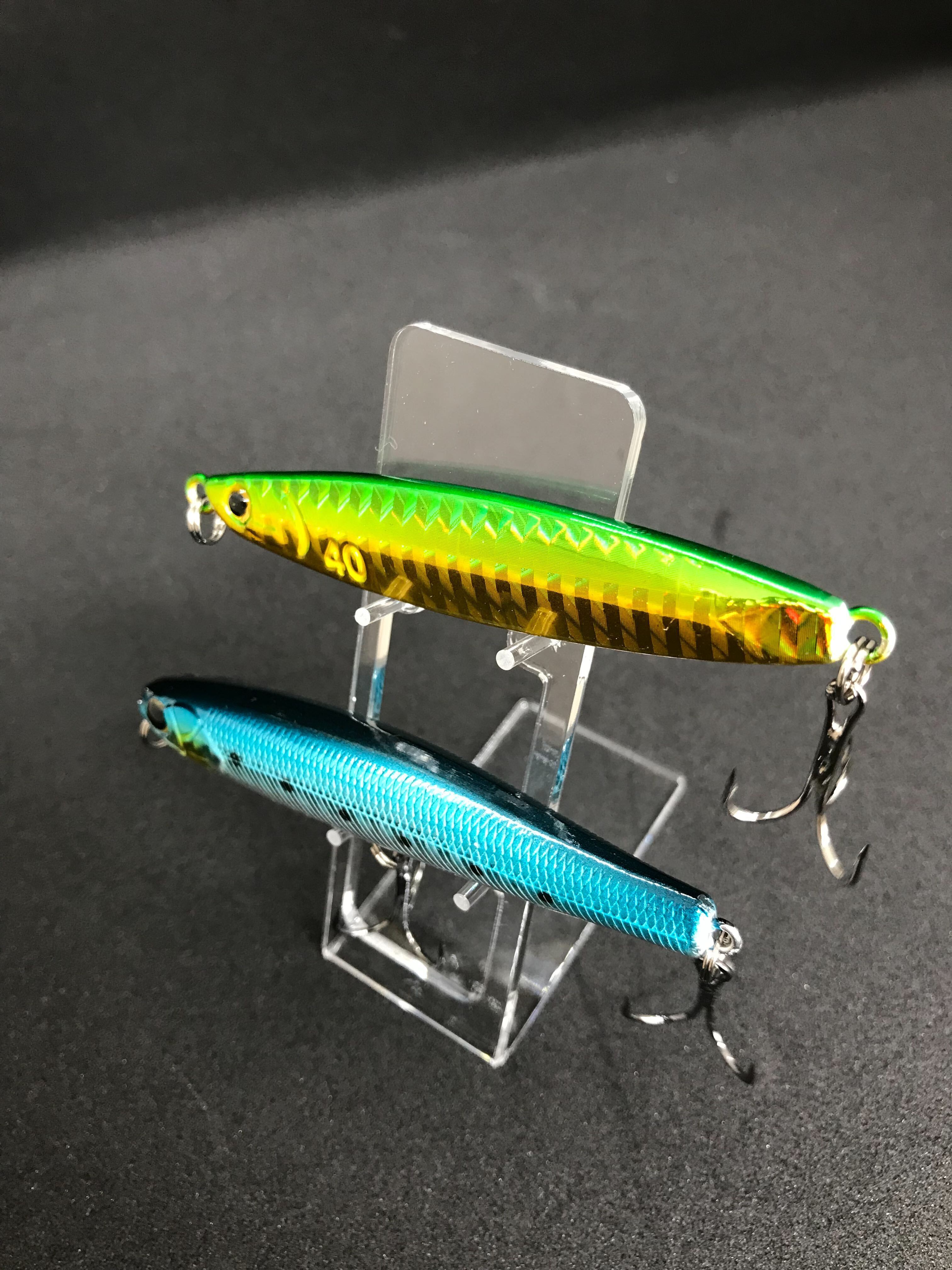 ※ルアーやディスプレイスタンド自体は簡単に割れたりしない頑丈さがありますが、取扱い時には十分ご注意ください。